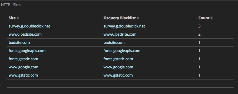 Pivot link from bro_http data (virtual_host) to blacklist domain using Trail of Bit’s osquery extension fwctl. This particular integration is definitely proof of concept, and should not be used in production without sufficient safeguards in place. The pivot link is created through a Kibana scripted field.
