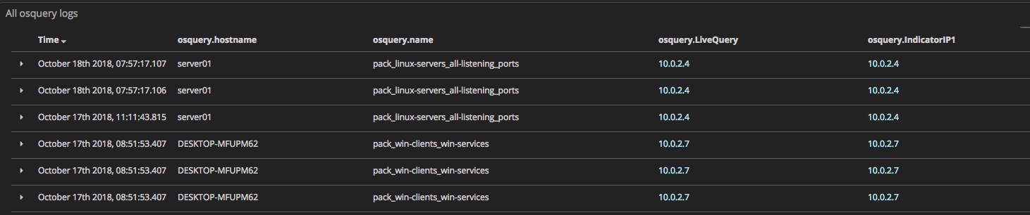 Pivot link from osquery data to the SO Indicators page.This link is setup just like any other hyperlinked indicator in SO.